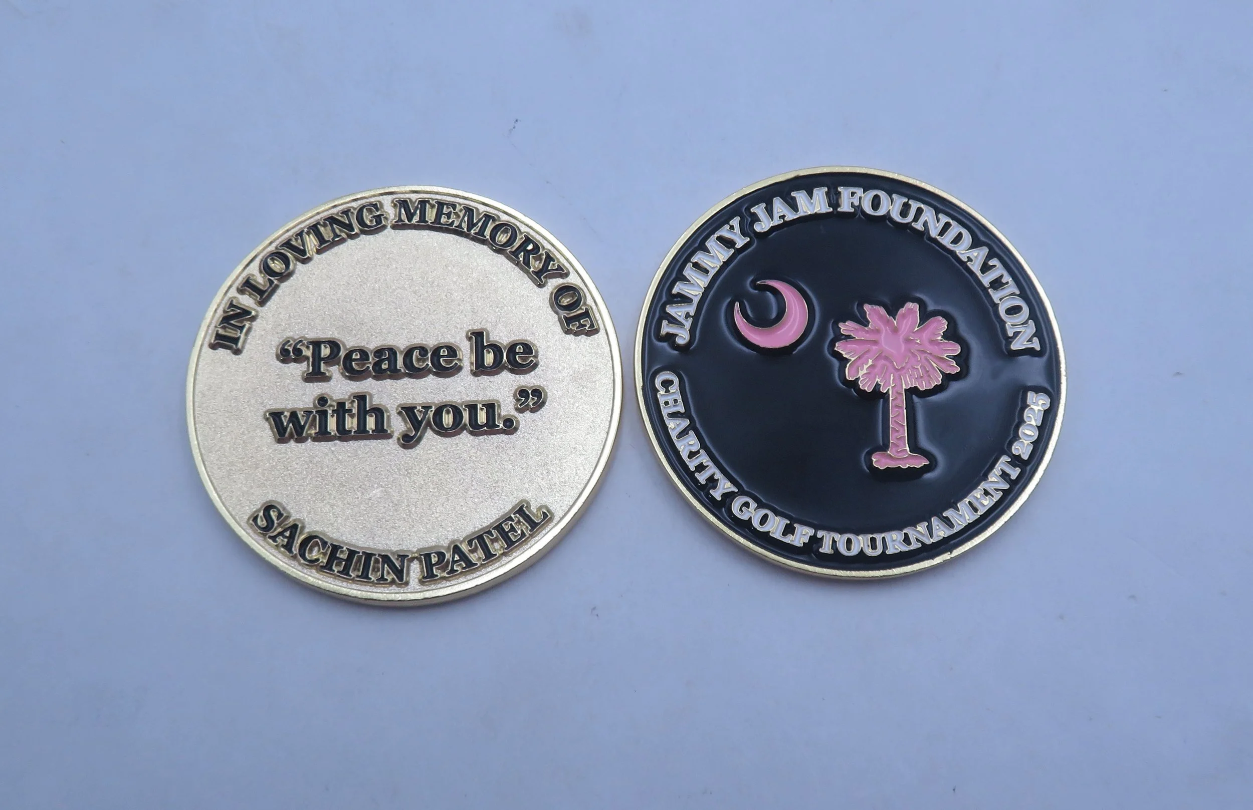 1st Edition Sachin Patel Commemorative Challenge Coin $101.00 2" 1st Edition Sachin Patel Commemorative Challenge Coin PLEASE CHECK BOX to support us by covering the processing fees we have to pay 3% Cover the Fee Purchase Now Purchase Now We are making a limited supply of Sachin Patel Commemorative Challenge Coins that are available to friends and supporters of Sachin's memory via the Jammy Jam Foundation Store and website. Each Challenge Coin is $101.00 (including Standard Ground shipping). 100% of the proceeds go to a Charity in Sachin's name. Shipments start the weekend of Sachin's birthday, which is incidentally during this year's Tournament. All coins will include a signed Thank You note from the Jammy Jam Foundation leadership team, and will ship with a display stand and box